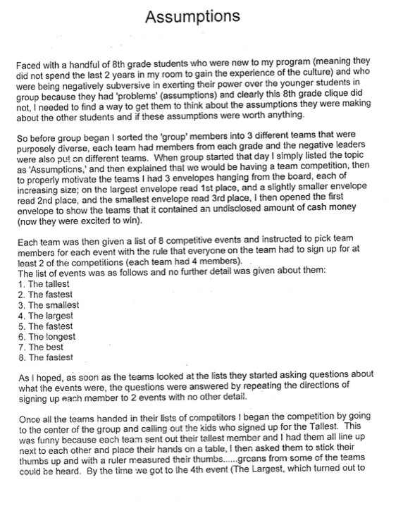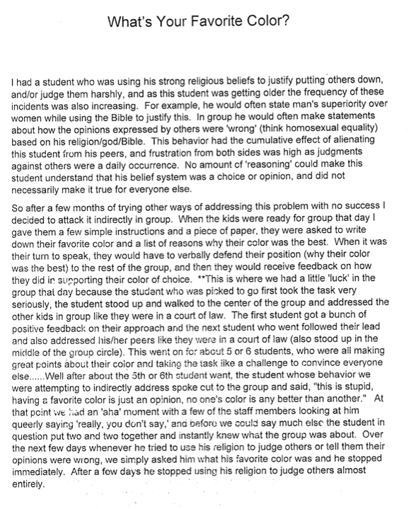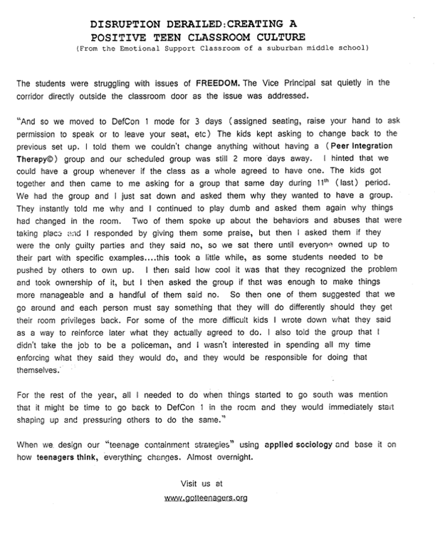 From the Emotional Support Classroom of a Suburban Middle School and a Teacher Trained In Applied Sociology. . .
