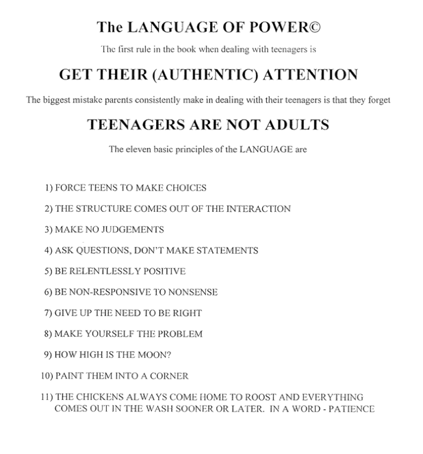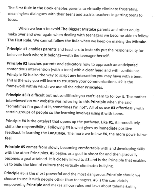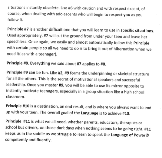 The way a good salesperson relates and talks to a potential customer is designed to achieve a specific and clear.cut goal-make the sale. When we as the adults are able to follow the Principles, teens are fascinated but respectful. We begin to be able to enter their world (their culture). They respect the fact that an adult can do such a thing, and they are surprised and mystified because most of them have never met an adult with this ability.