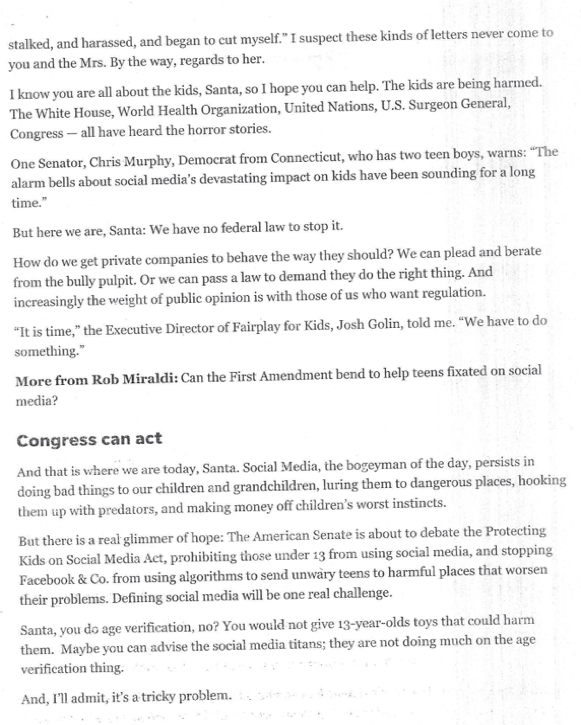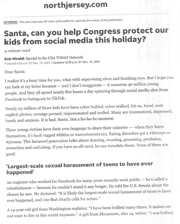 Santa - Can You Help Congress protect Our kids from Social Media This Holiday?